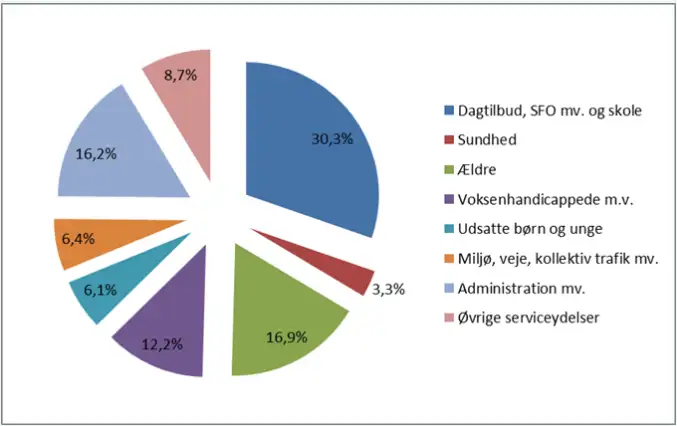 Figur 1: Procentvis fordeling af nettoserviceudgifter fordelt på sektorområde i 2014
