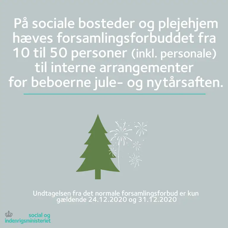- jule- og nytårsarrangementer den 24. og 31. december 2020 på sociale tilbud og plejehjem og