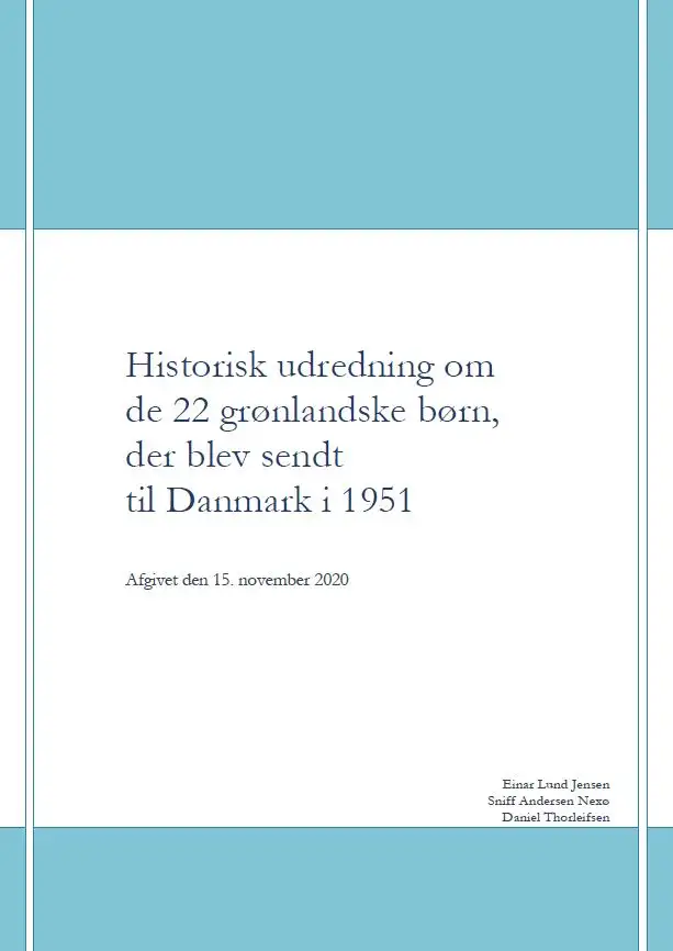 Regeringen og Naalakkersuisut offentliggør i dag den historiske udredning om de 22 grønlandske børn, som blev sendt til Danmark i 1951. Udredningen søger bl.a. at afdække baggrunden for forsøget, herunder hvem der blev udvalgt, hvorfor og hvordan; børnenes ophold i Danmark og Grønland; børnenes oplevelser undervejs i forsøget samt de menneskelige konsekvenser, det fik for dem.