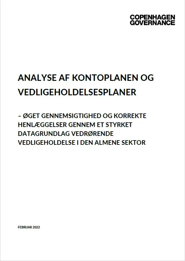 Denne rapport omfatter en analyse af kontoplanen og reglerne vedrørende vedligeholdelsesplaner med fokus på kontering af vedligeholdelsesudgifter, opgørelse af vedligeholdelsesbehov og fastsættelse af henlæggelser.